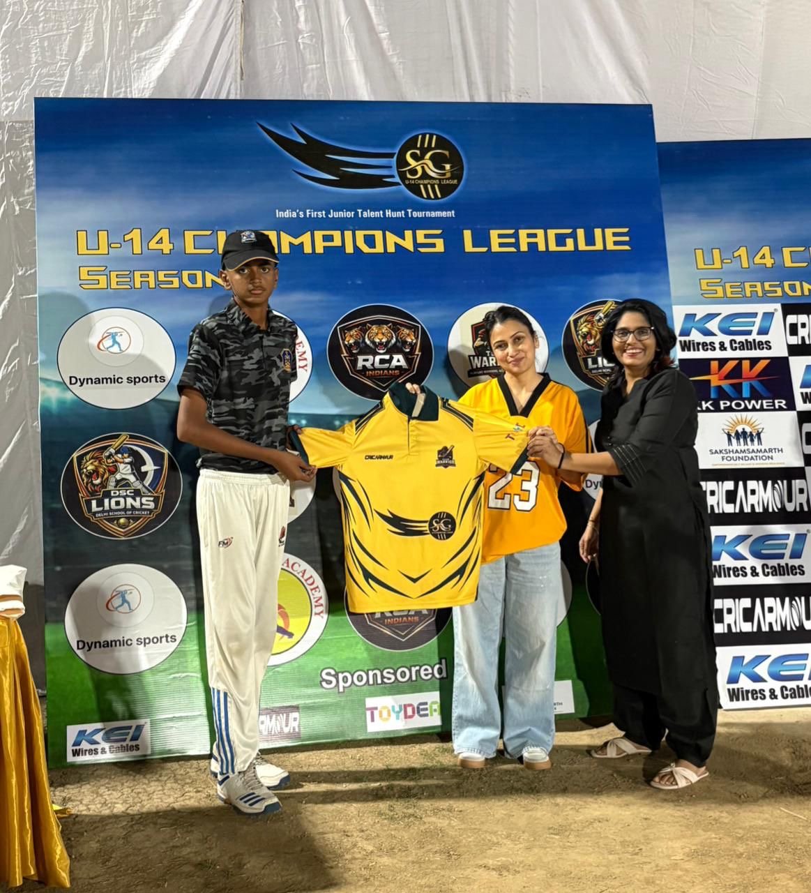 The tournament is sponsored by leading brands including KEI Industries and is represented by Director Akshit Diviaj Gupta, Toydea represented by Co-founder Shveta Rajput, Cricarmour represented by Founder Jay Soni, and Only Sports represented by Founder Shawez Khan.